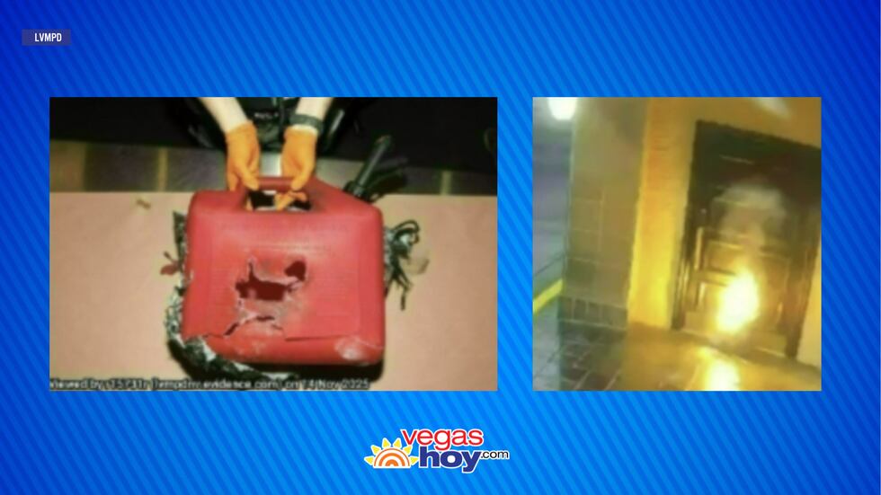 La Policía Metropolitana de Las Vegas (LVMPD, por sus siglas en inglés), identificó a uno de los dos sospechosos que aparecen en el video como John Navarro, de 35 años, quien enfrenta cargos por usar explosivos para dañar la propiedad, posesión de un artefacto explosivo, incendio premeditado en primer grado y conspiración para cometer incendio premeditado.